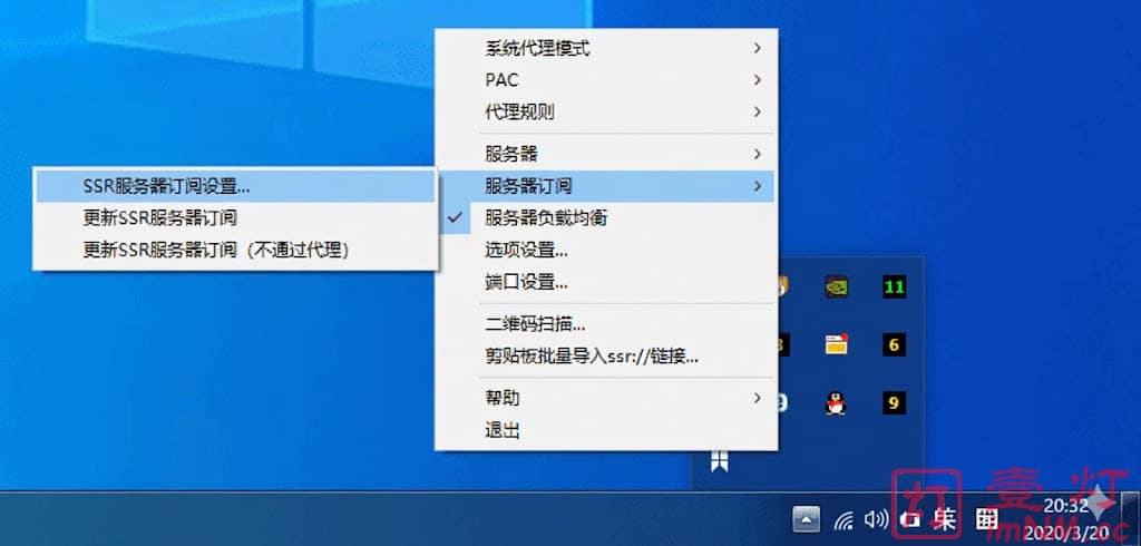 (3)再次右键点击托盘栏粉色纸飞机图标,在「服务器订阅」选项中选择「更新SSR服务器订阅」。稍等片刻(具体时间取决于您的网络环境),您将会收到「服务器订阅 ×× 更新成功」的通知消息,同时查看服务器列表也可以看到对应的服务器节点。