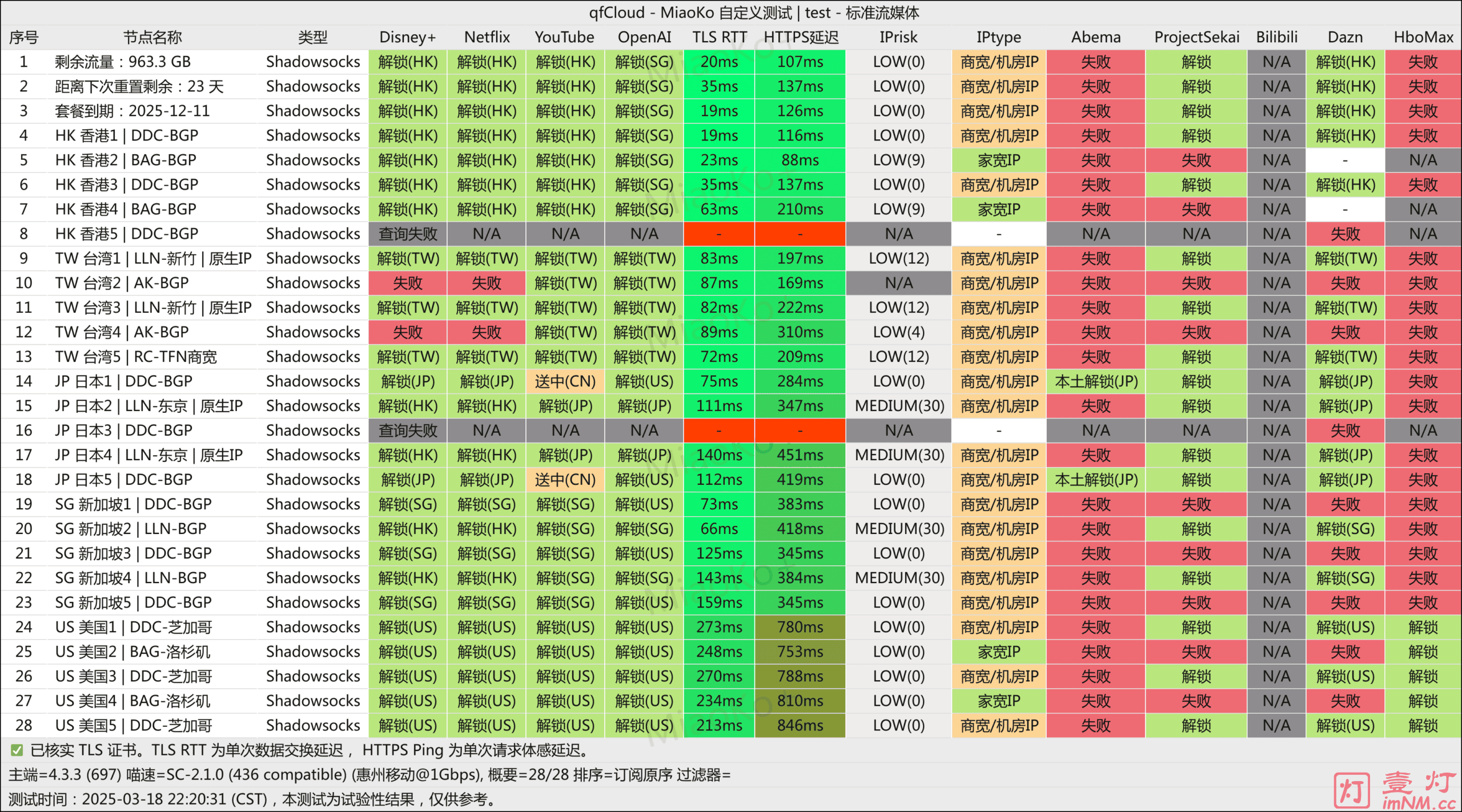 qfCloud,中文名称千帆云,是一家低调稳定运营超过2年的高速稳定SS机场,拥有近30条优质线路,遍布全球各地,流量套餐种类也非常丰富,可以满足各种应用场景的需求。此外,qfCloud机场全部使用国内BGP入口和金融企业级IPLC/IEPL国际专线,而且全节点解锁奈飞Netflix/HULU/HBO/TVB/动画疯等国外流媒体视频,由于IPLC/IEPL内网专线不过GFW,不会被封锁,在特殊时期也非常稳定。此外,qfCloud不限制同时在线的设备数量,只要您套餐流量充足,自己可以随意使用。一灯不是和尚使用一段时间后,我认为其服务器线路节点稳定性和网络连接质量都是非常优秀的。